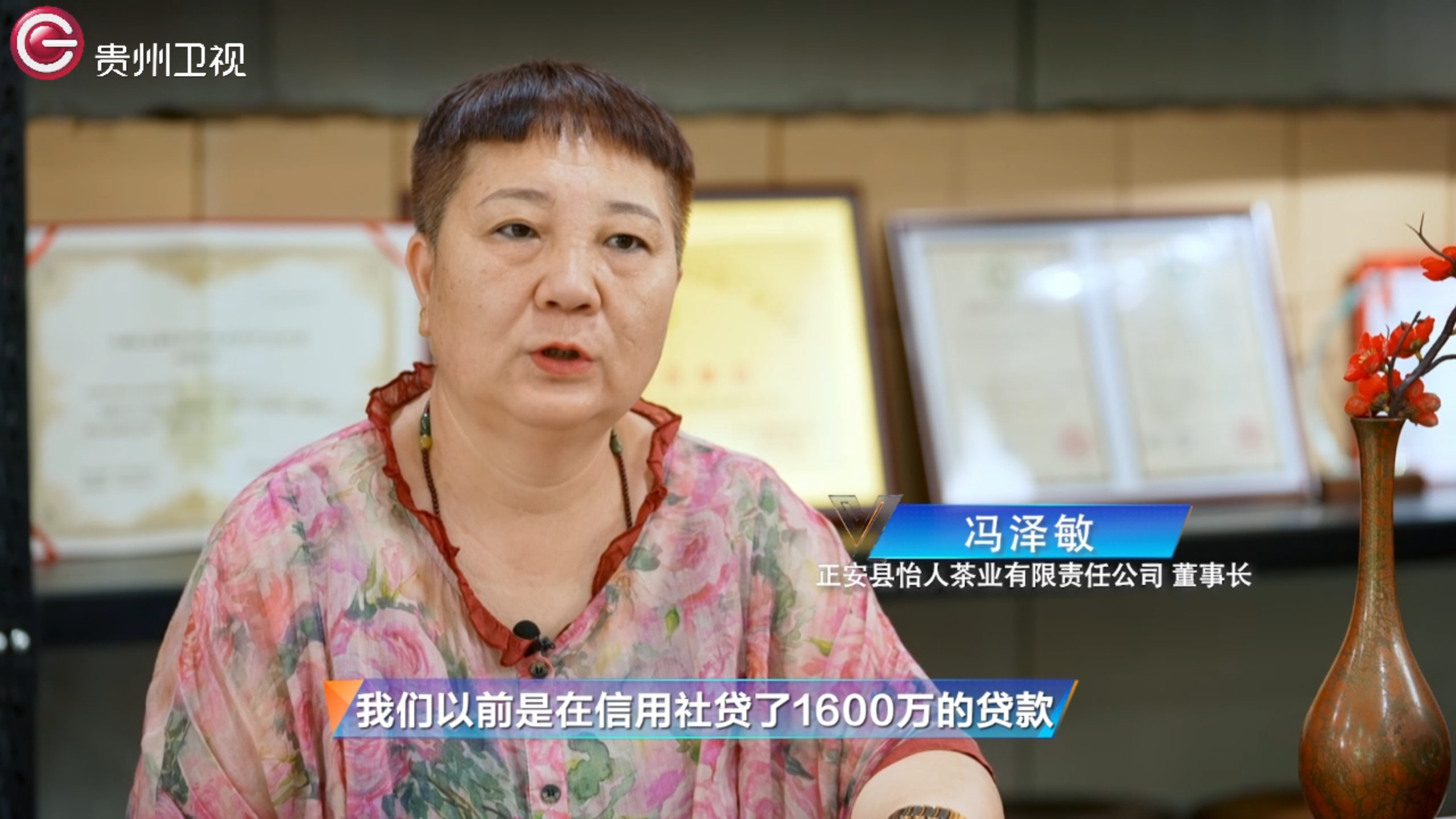 正安县怡人茶业有限责任公司董事长冯泽敏:“这十多年一直都跟他们打交道,信用联社是我们很好的助手。我们信用社的生态积分,使我有信心把这个茶叶和产业链做好,更加做出生态茶。”